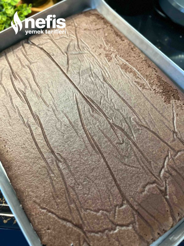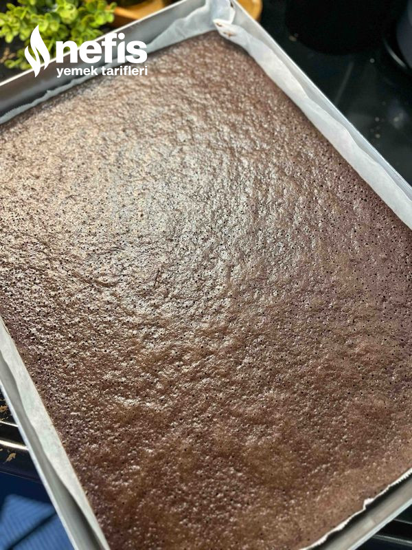- Pişen keki kağıt ile birlikte tepsiye aykırı çevirelim üzerini süt ile ıslatalım.