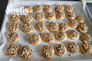 3. Ceviz büyüklüğünden daha küçük kesimler alıp elde yuvarlak yapıp tepsiye diziyoruz.