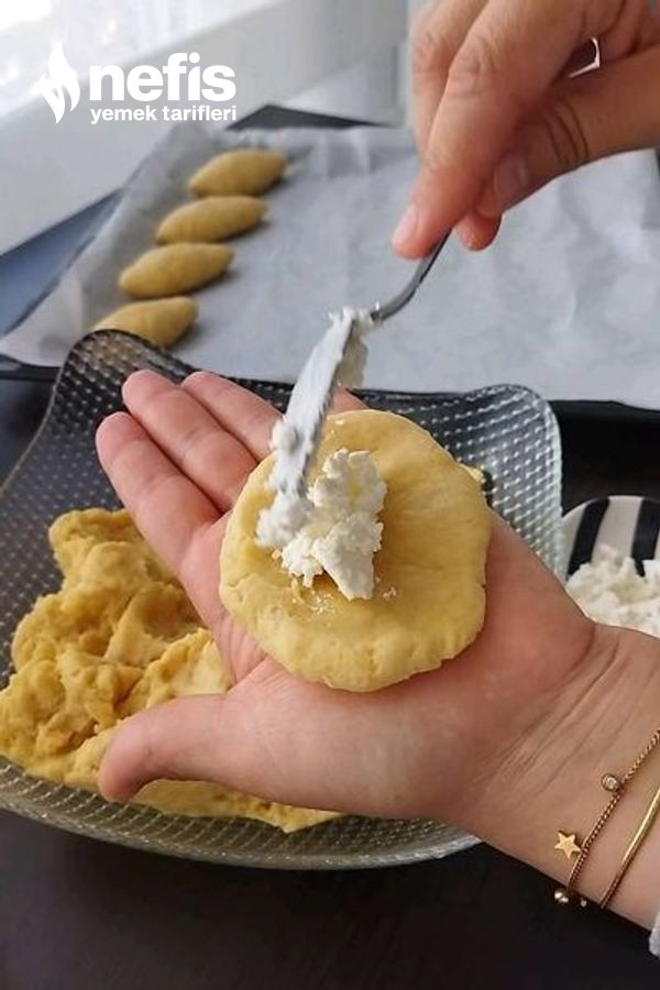 - Hamurdan mandalina büyüklüğünde bezeler koparıp açın içine peynir koyup kapatın.