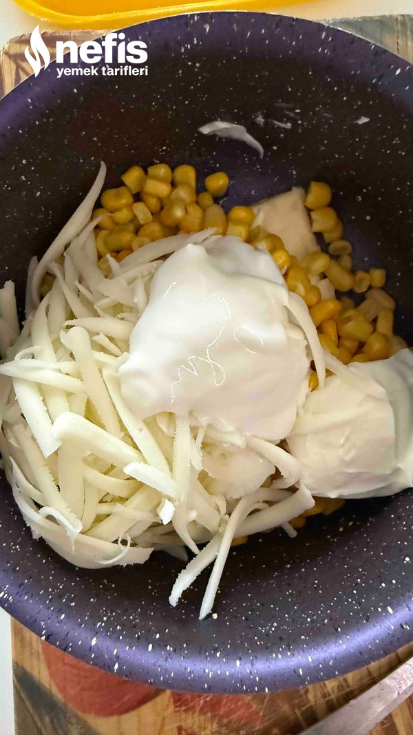 - Küçük tencereye mısır, tereyağı, krema ve peynirleri ekleyin, ocakta peynir erinceye kadar karıştırın, ek ekmeği ortadan kesip mayonezli harcı sürün.