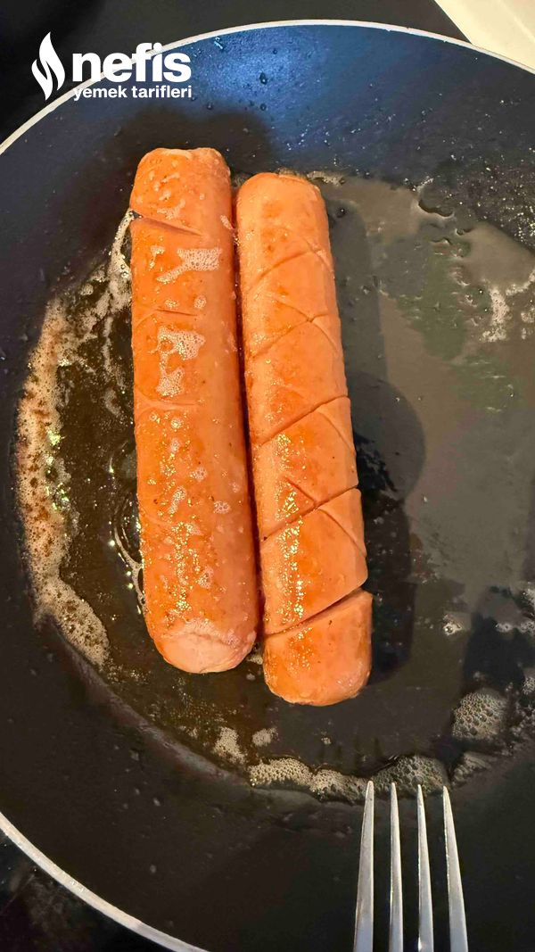 - Sosisleri üzerinde hafif kesip tavada kızartın.