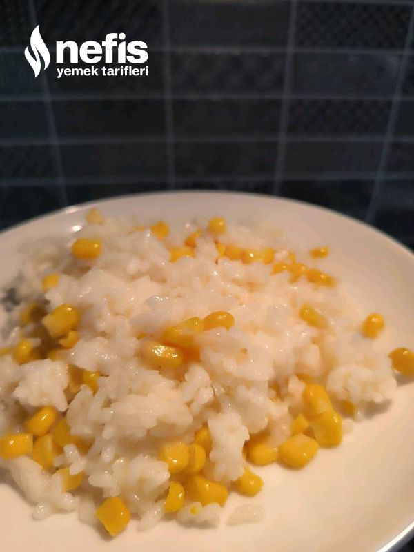 - Piştikten sonra kaşıkla havalandırılır (çok karıştırılmaz). Konserve mısır eklenir karıştırılır. Kokusu çıksın diye biraz kesim parça tereyağı pilavın üzerine konur.