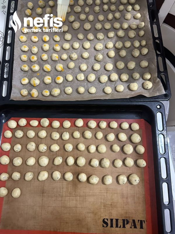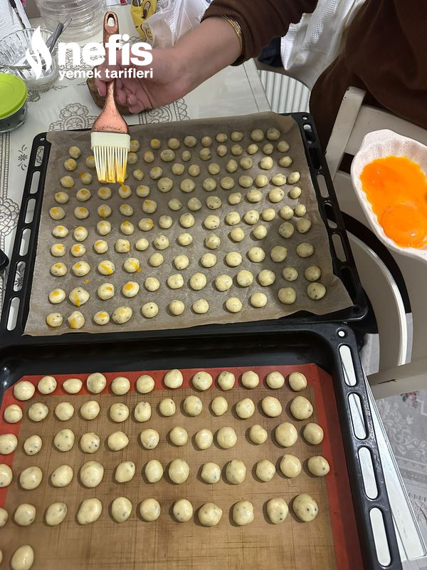 - Misket büyüklüğünde yuvarlaklar yapıp tepsiye diziyoruz.