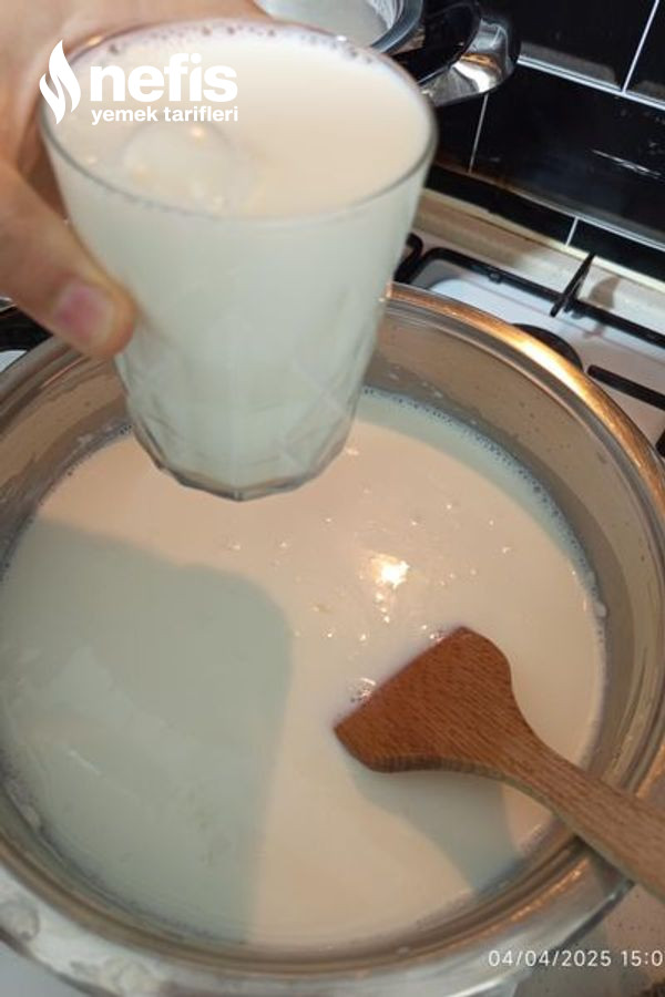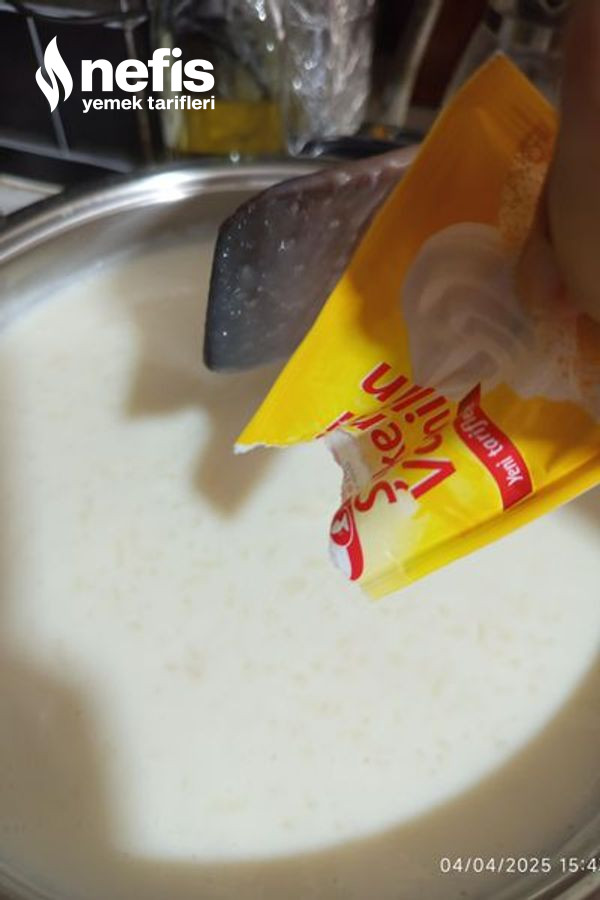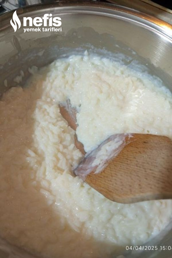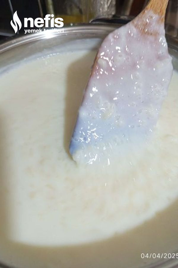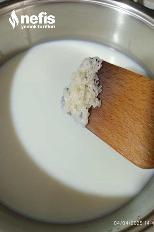 - Pirinçimiz su ve sütü emdikten sonra, üzerine kalan tüm sütü ekleyelim.