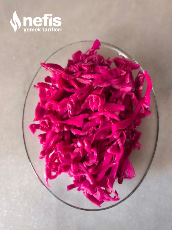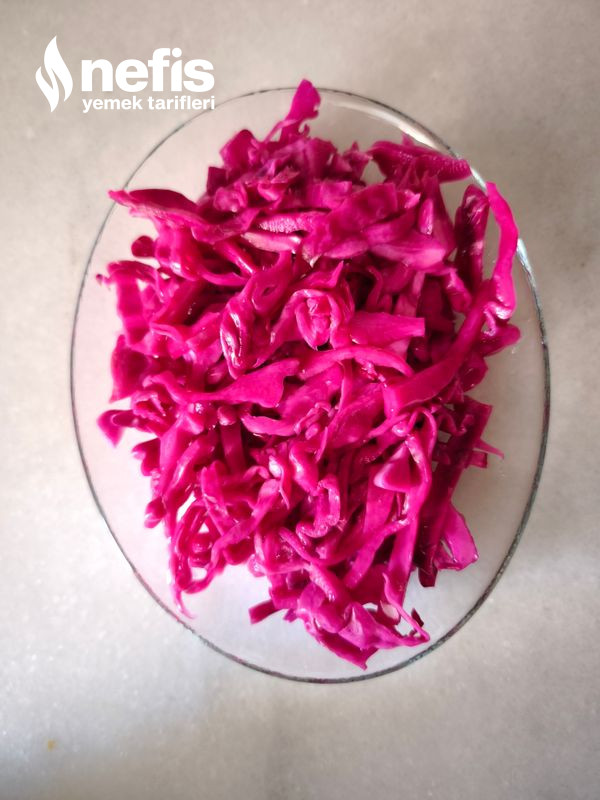 1. Mor lahanayı yarım ay biçiminde ince ince keselim.