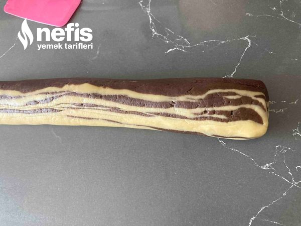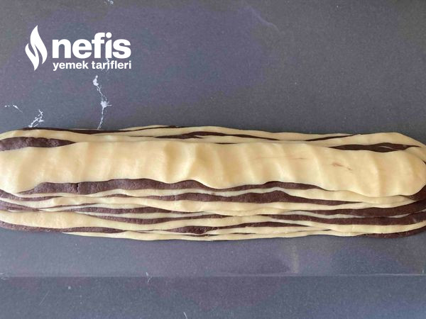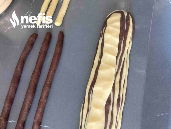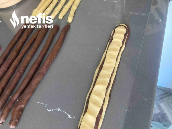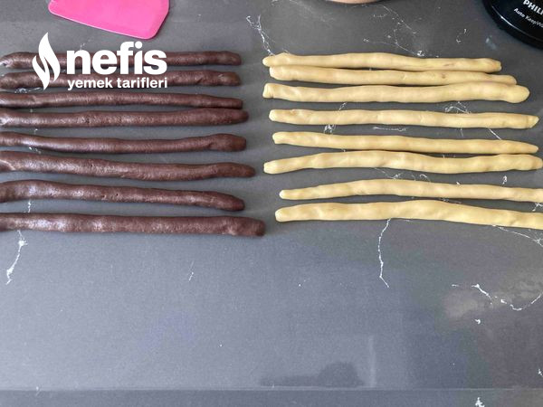 4. Daha sonra ayırdığımız iki hamuru da küçük eşit modüllerde rulo haline getirelim.