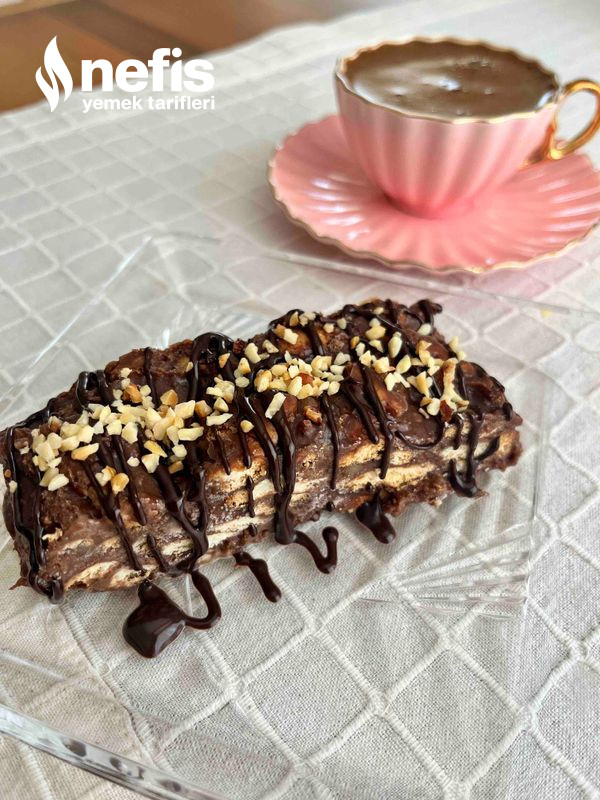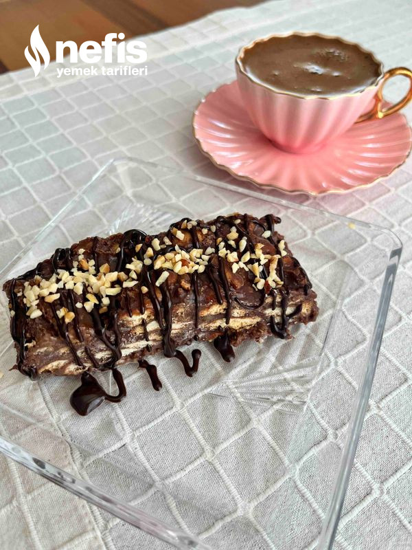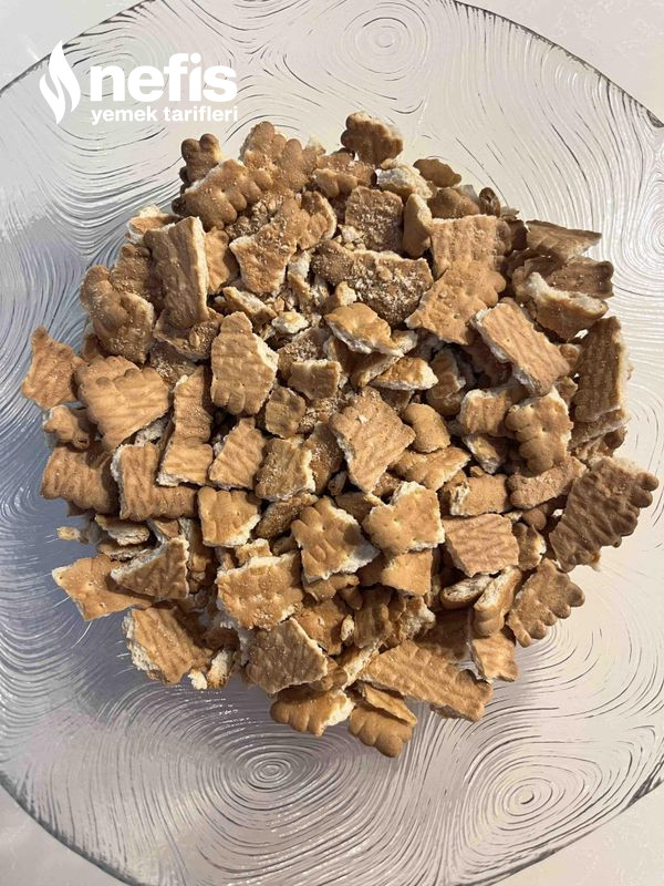 - Bisküvileri elinizle kırın. Ocakta krema, çikolata, tereyağı ve kakaoyu karıştırarak eritin.