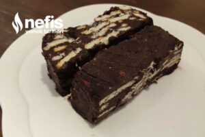 - Bisküvileri eliniz ile dörde bölerek karışımın içine atın. Karıştırın.