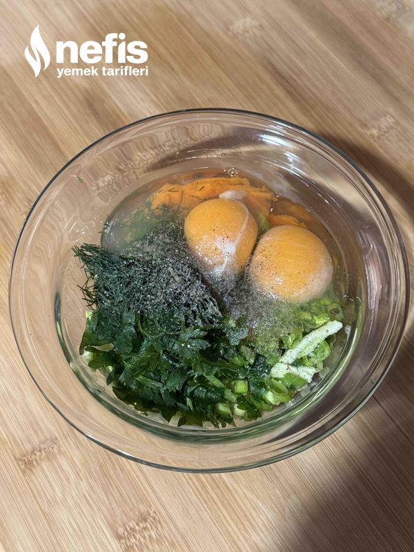 3. İçerisine maydanoz, dereotu, yumurta, tuz ve karabiberi ekleyip karıştıralım.
