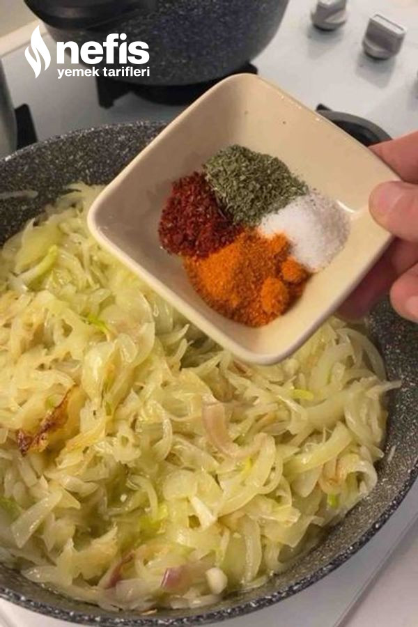 - Soğanlar piştikten sonra baharatlarını ekliyoruz ve güzelce karıştırıyoruz. Soğumaya bırakıyoruz.