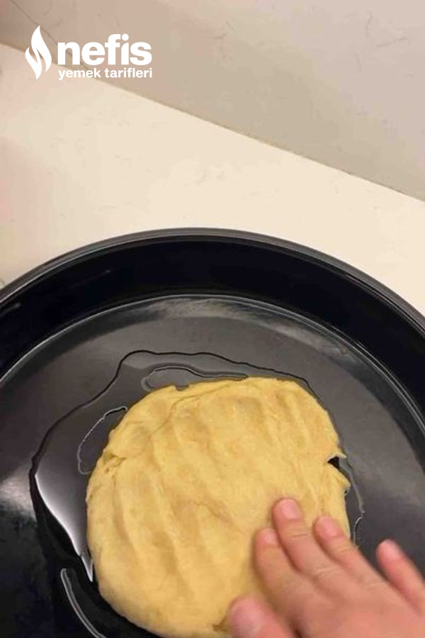 - Fırın için uygun tepsiyi yağlıyoruz ve hamurun birinci kesimini tepsiye alıyoruz. Elimizle yaydırıyoruz.