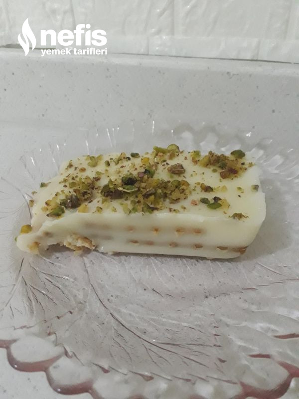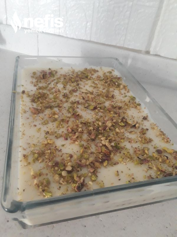 5. En son üzerine antep fıstığı yada hindistan cevizi serpiyoruz ve dolaba dinlendirmeye bırakıyoruz afiyet olsun.