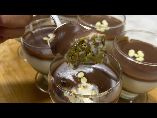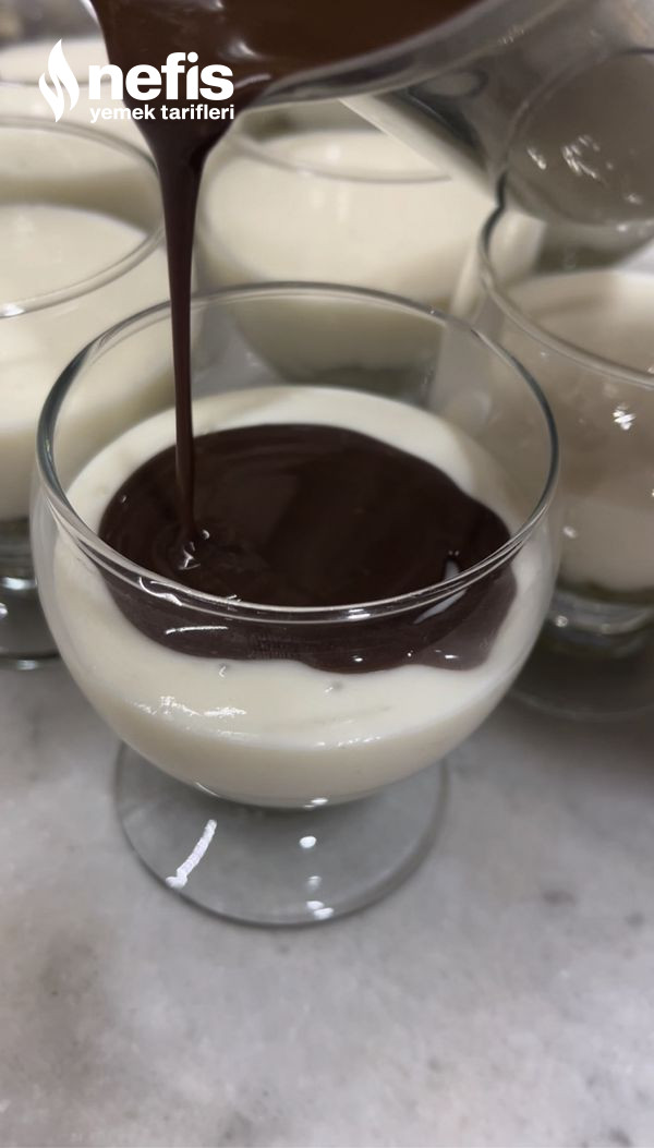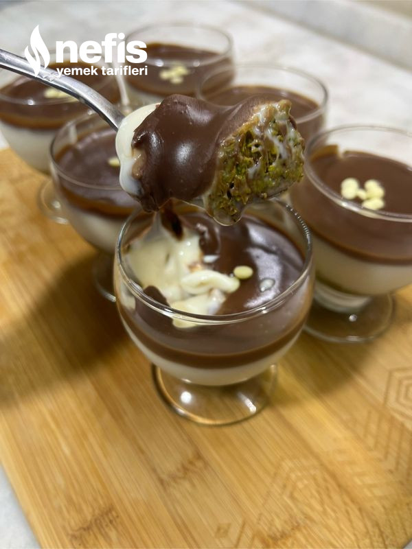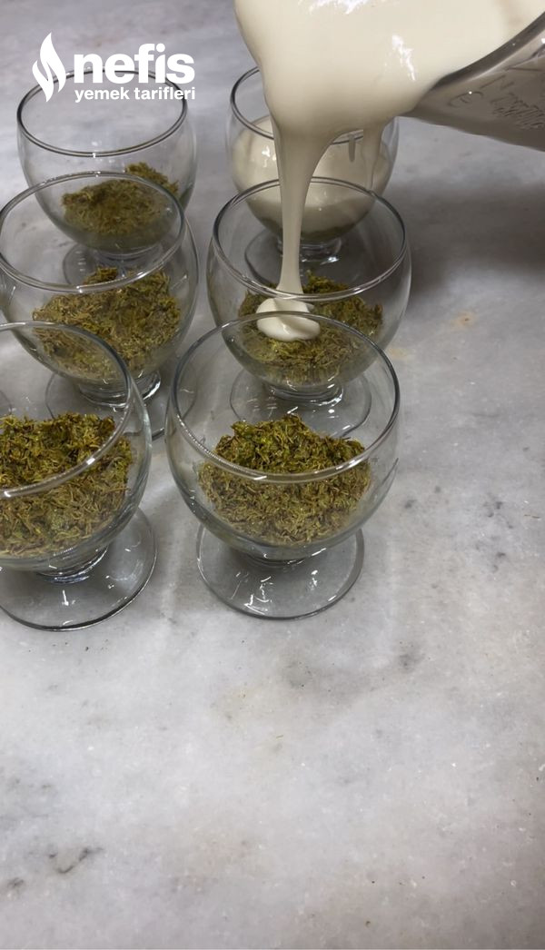 - Yapacağımız kasenin tabanına fıstıklı kadayıf ezmesinden koyup üzerine muhallebiyi ekleyelim. Bu halde 1 gece bekletelim.