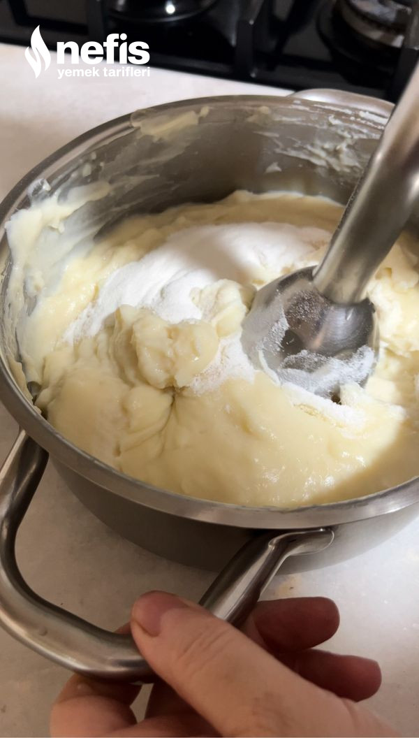 - Muhallbeyi yaparken krem şanti hariç başka tüm materyalleri tencereye koyup pişiriyoruz