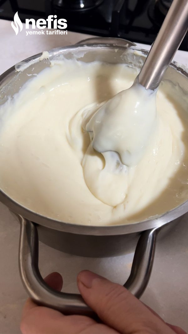 - Soğuduktan sonra üzerine 1-2 paket krem şantı tozu ekleyıp blendırdan geçiriyoruz.