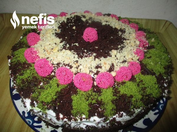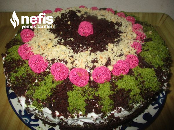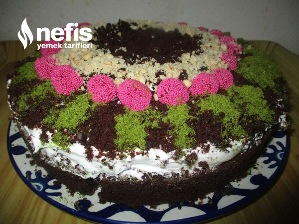 - Pastanın üzerine serpelim. Üzerini isteğe nazaran süsleyelim afiyet olsun.