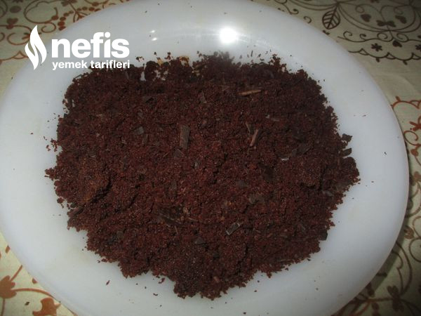 - Deliklerden çıkan kakaolu kekleri ufalayalim, rendelenmiş çikolata ile karıştıralım.