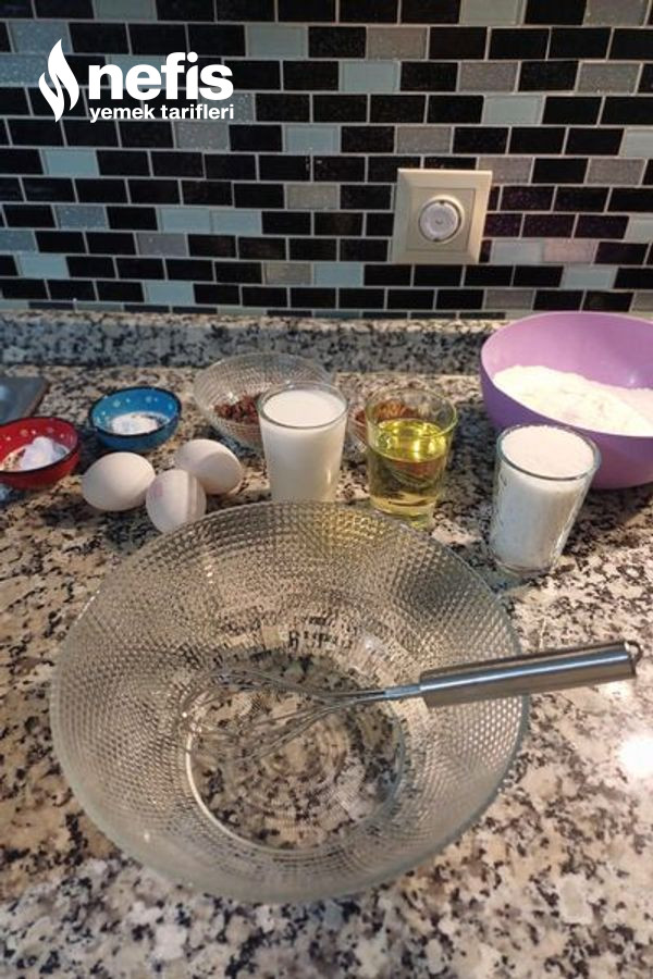 3. Kabartma tozu ve un elenerek sıvı karışıma eklenir. Unu kesinlikle eleyin kekin sünger üzere olmasını sağlıyor.