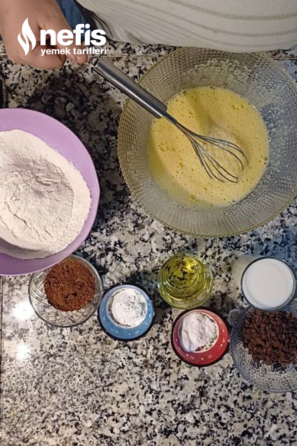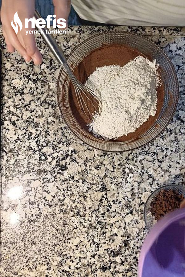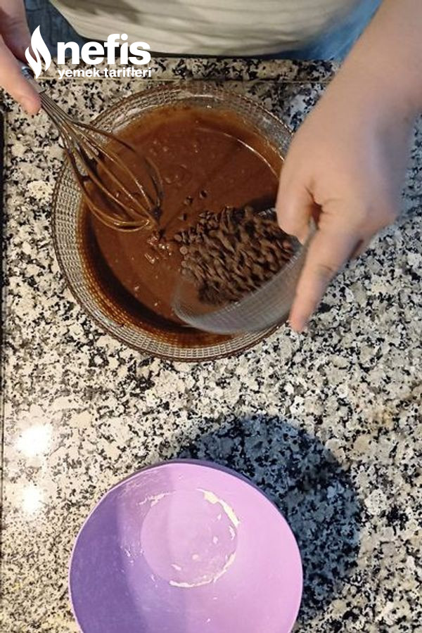 4. Tamamı homojen formda karışan kek hamurumuza damla çikolataları ekleyip, bir tıp daha karıştırın.