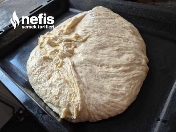 - Daha sonra tuzu ve yağını ekleyip en son azar azar unu ekleyip hamuru toparlıyalım ve üzerine kapatıp mayalanmaya bırakalım.