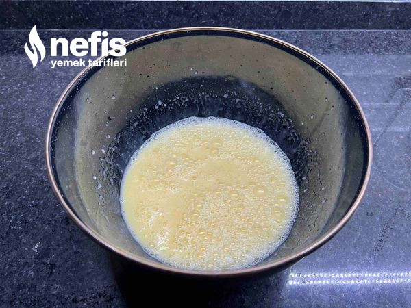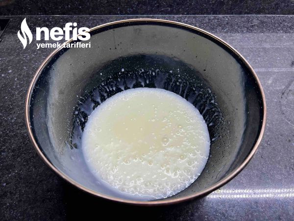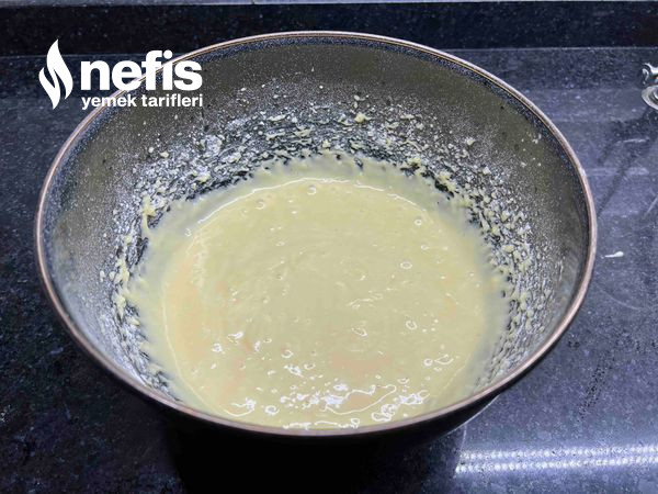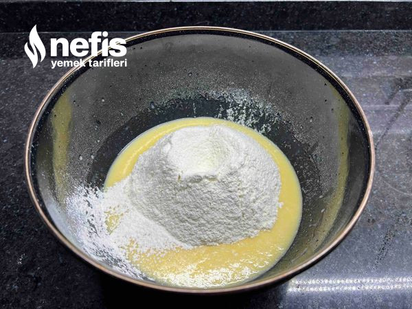 3. İki bardak un ve kabartma tozunu eleyerek ilave edip, güzelce mikserle çırpın.