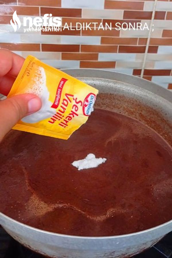 - Kıvam almaya başladıktan sonra vanilya ekleyip 1-2 çeşit karıştırıp ocaktan alalım dikdörtgen borcama yahut yuvarlak borcama harcımızı boşaltalım ve birinci sıcaklığı çıkan kadar 10 dakikada kadar dinlendirelim .