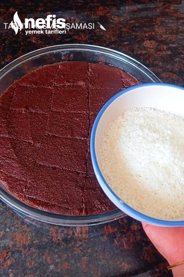 - Süre sonunda tatlımızı kare biçiminde keselim ve hindistan cevizine bulayalım ve servise hazır.