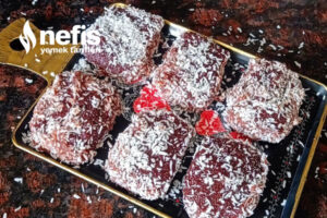 - Süre sonunda tatlımızı kare biçiminde keselim ve hindistan cevizine bulayalım ve servise hazır.