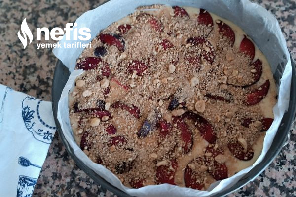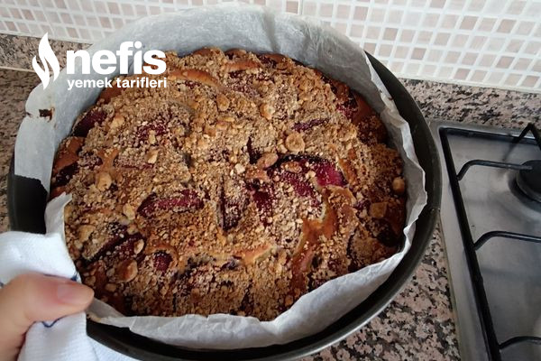 2. Unu, kabartma tozunu, vanilyayı ekleyip düşük dönemde çırpın kalıba döküp ince doğranmış erikleri dizin.