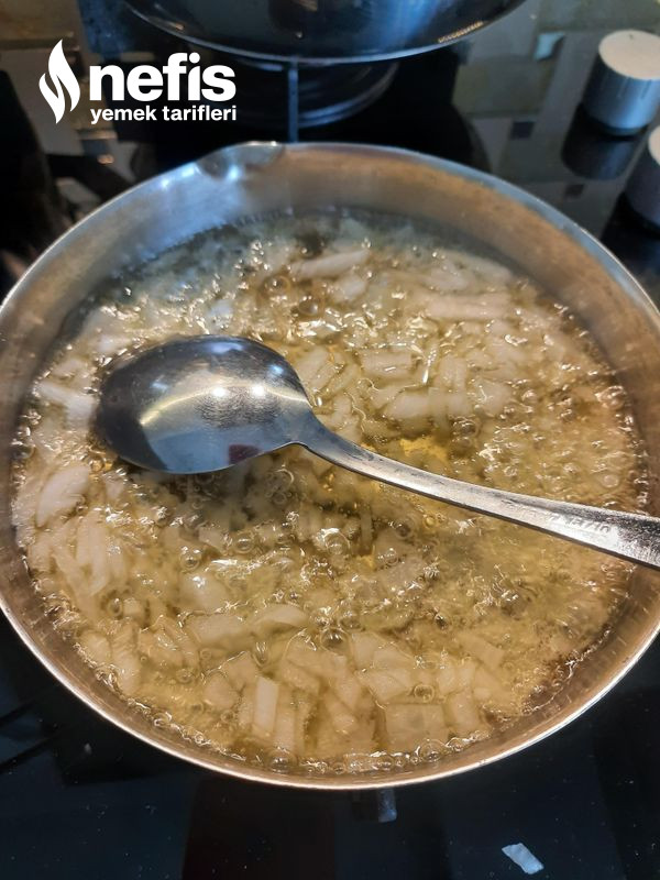 3. Küçük küçük doğradığımız kuru soğanı zeytinyağında öldürüp üstüne ekleyip sıkıp servis tabağına alalım.