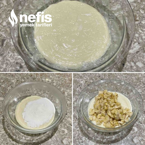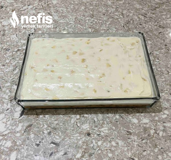 - Krema için yağ ve tozşanti hariç bütün gereçleri tencereye alıyoruz ve pişiriyoruz, yağı ek edip karıştırıyoruz, soğuması için streçfilmi yapışık üzerine kapatıp soğumaya alıyoruz, soğuyan kremaya toz kremşantiyi ek edip güzelce çırpıyoruz.