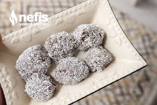 3. Ayrı bi tabağa hindistan cevizi koyup yaptığımız topları o tabağa atıp güzelce hindistan cevizine buluyoruz.