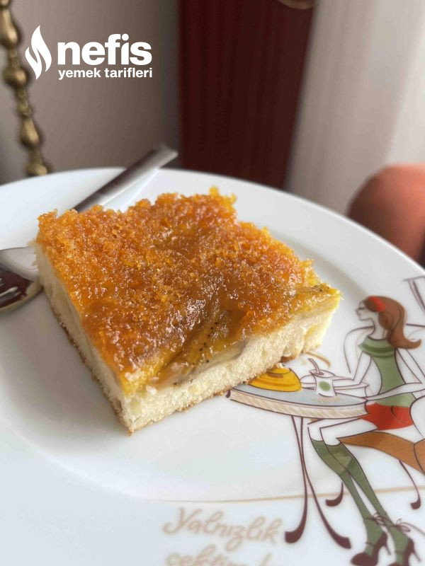 5. Soğuyan keki uygun bir tepsiye karşıt çevrilir ve dilimlenir afiyetle.