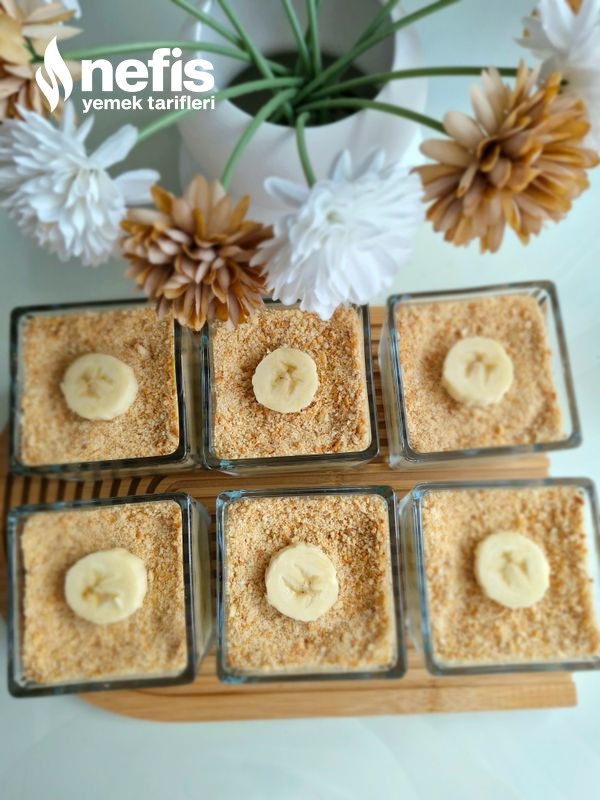 - Diğer taraftan bisküvi kum haline getirilir ve muzlar doğranır.