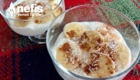 - Muzlar küp küp doğranır muhallebi sade olarak kuplara hisse edilir muz eklenir.