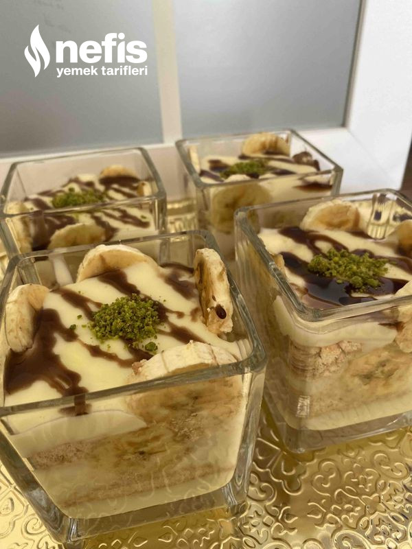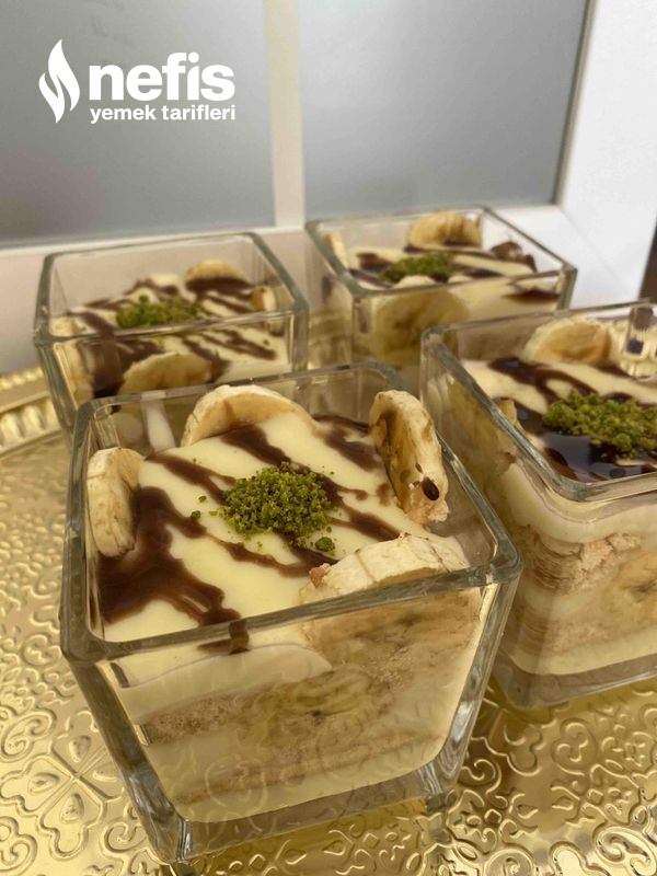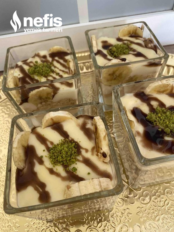 - Kullanacağımız kaseye evvel muzlu puding sonra bisküvi tozu üstüne dilimlenen muzlar sonra puding, bisküvi, muz formunda devam edilir.