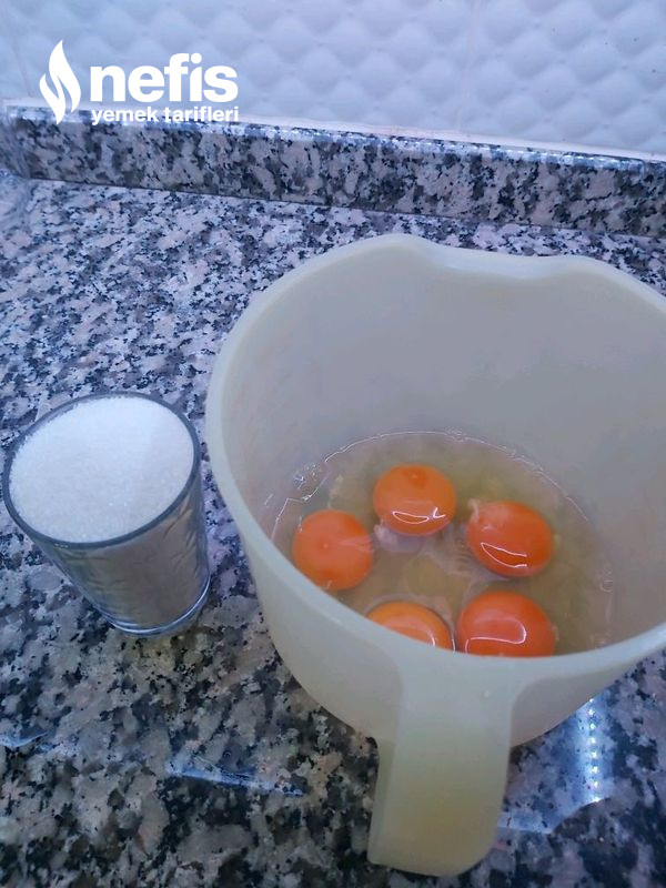 - Yumurta ile şeker çok az kaşık yardımı ile karıştırın .