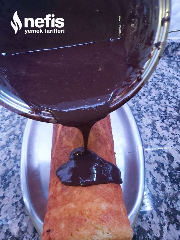 - Kekimiz piştikten sonra, hazırlamış olduğumuz pudingin yarısını kekin her tarafına eşit ölçüde sürülür.