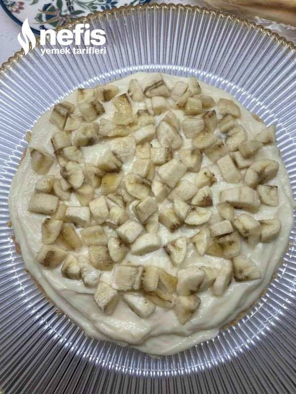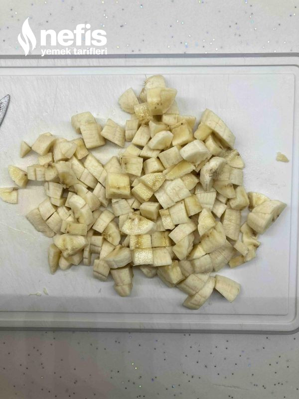 12. Keke evvel kremamızı güzelce sürelim üstüne küçük küpler halinde doğradığımız muzları yerleştirip başka kata çıkalım. İkinci katı da tıpkı formda tamamladıktan sonra üçüncü katı kapatalım ve pastanın üstünü sıvamadan evvel 30-45 dk buzdolabında dinlendirelim (çökme, akma vs olmaması için).