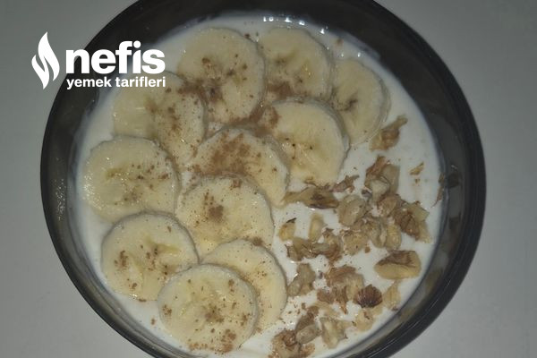 2. İçine muz ez ve ekleyin. Üzerine muz dilimlerini dizin.