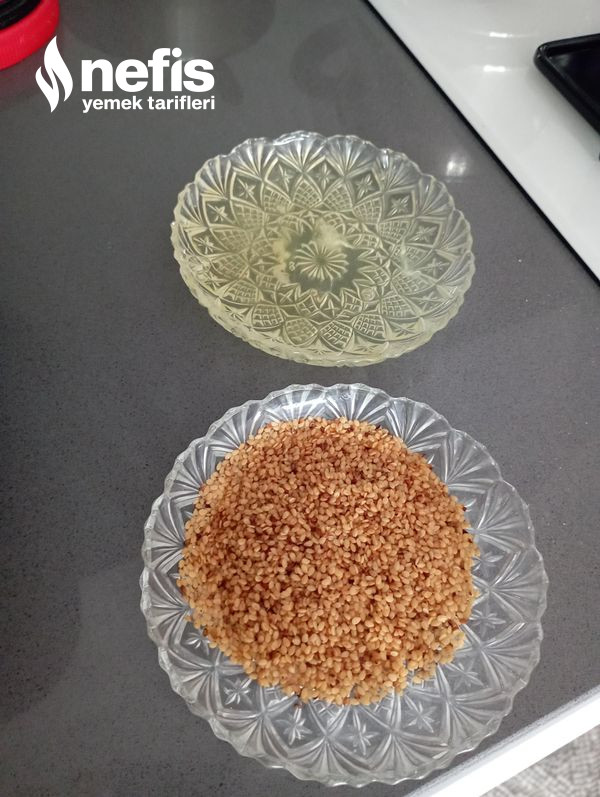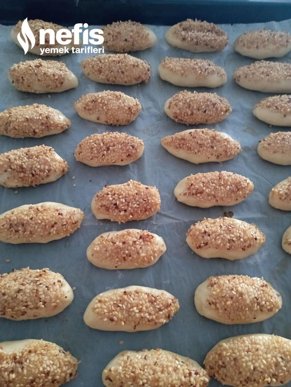 4. Önce yumurta akına sonra susama buluyoruz, tepsini bitirdikten sonra ortasından çizikler atıyoruz.