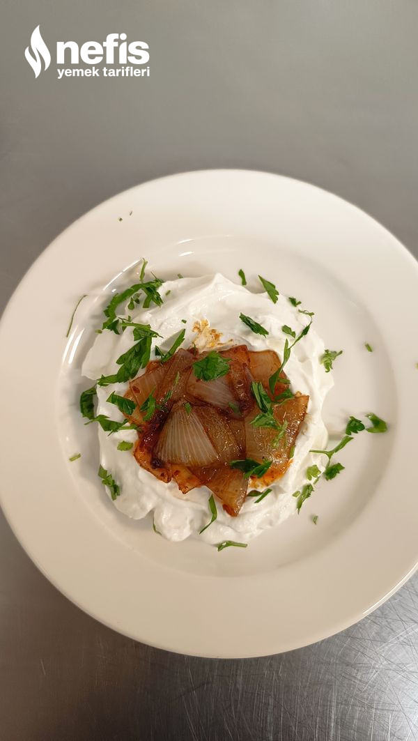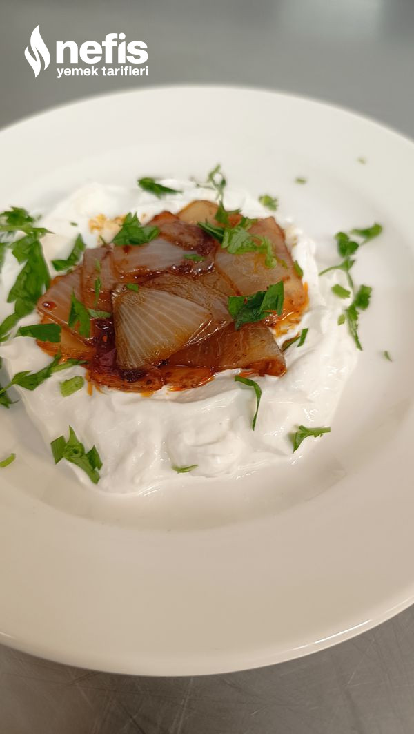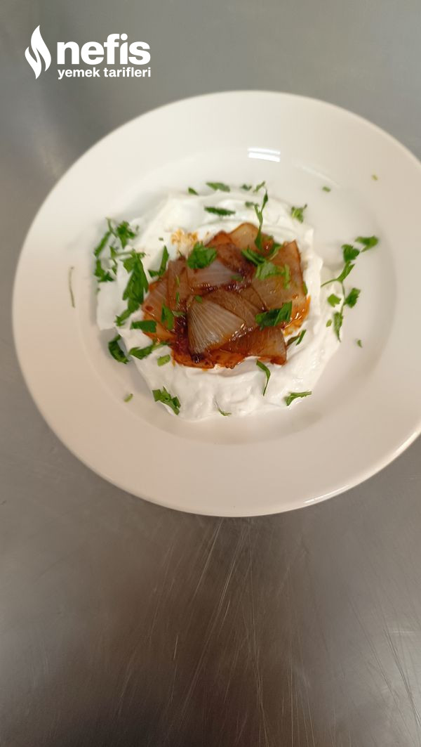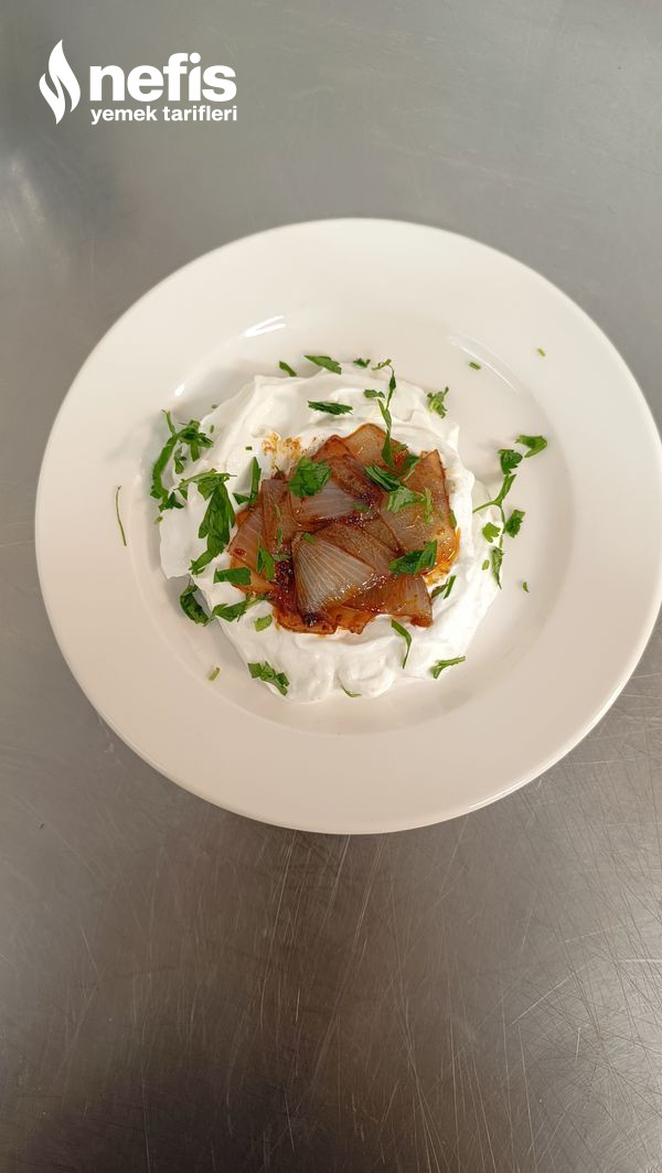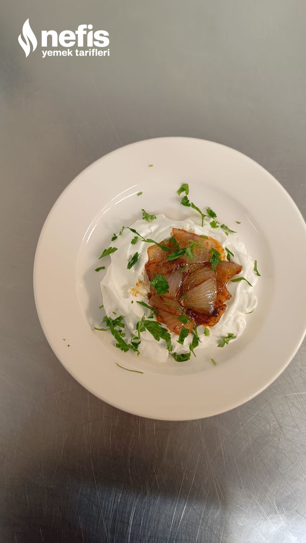 - Süzme yoğurdun üzerine soğanlarımızı alıp servis edebiliriz.