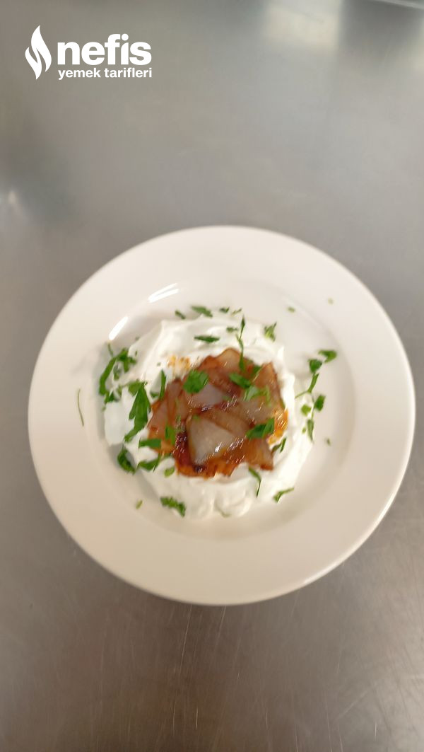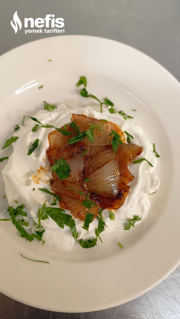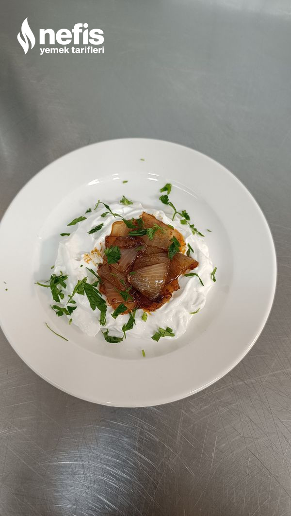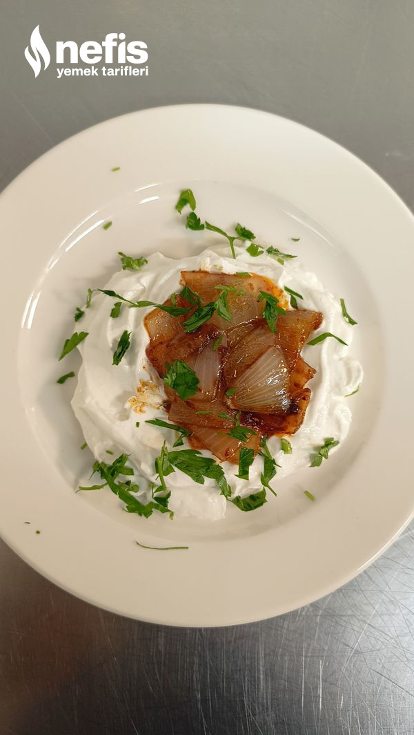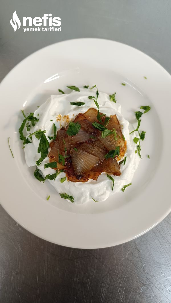 - Süzme yoğurdun üzerine soğanlarımızı alıp servis edebiliriz.