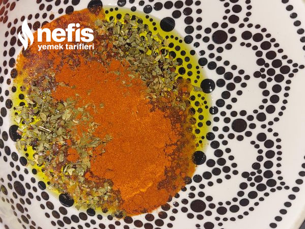 - Sosu hazırlayalım bir kase içine istediğiniz ölçüde zeytinyağını ek edelim.