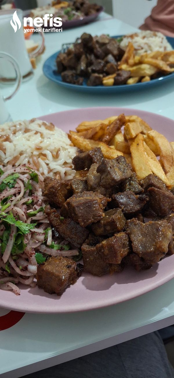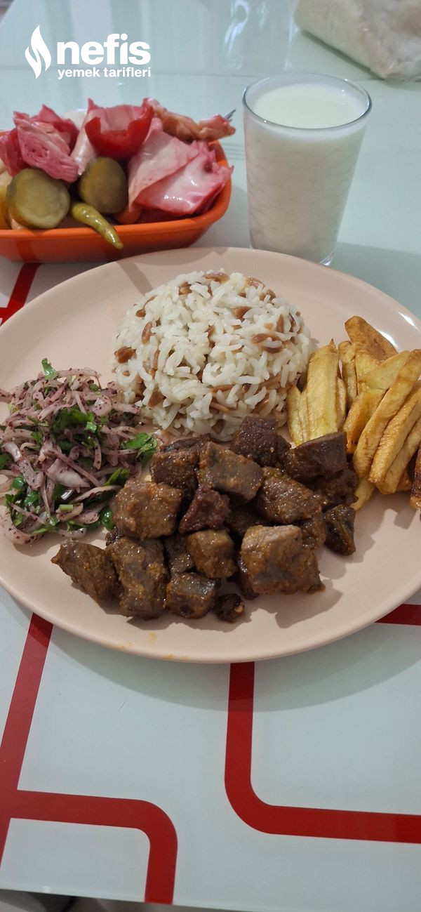- Ben yanına pilav,patates kızartması ve soğan salatası yapıyorum. Siz istediğiniz üzere servis edebilirsiniz afiyetler olsun.