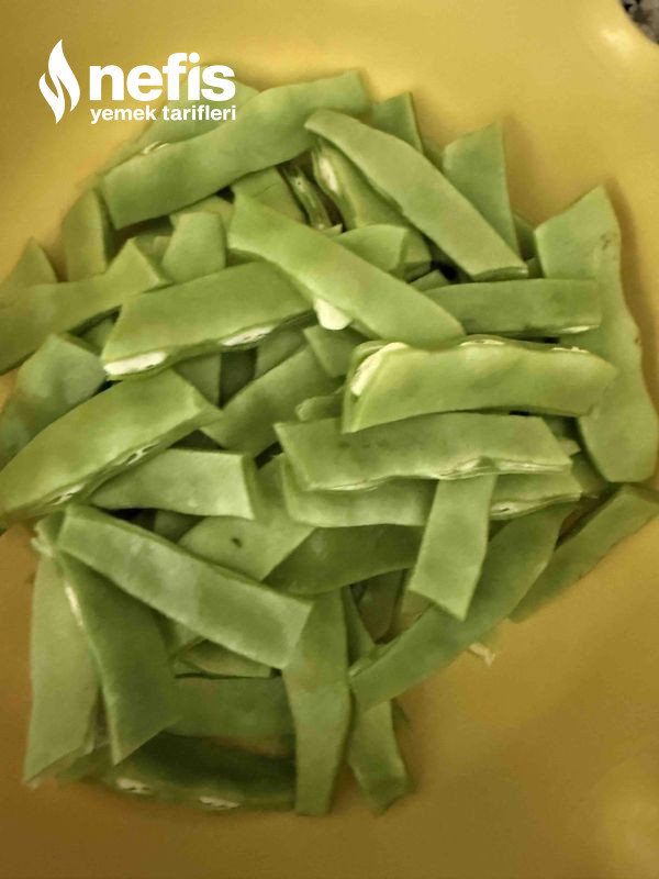 1. Fasulyeyi yıkayıp, ayıklayıp, istediğimiz büyüklükte kesiyoruz.