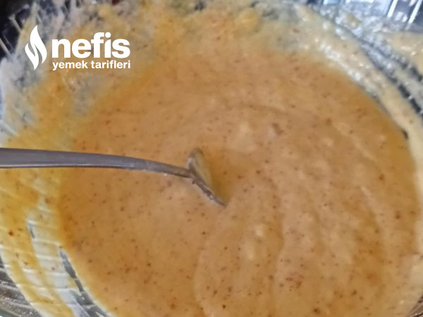 - Uygun bir kaba yumurtayı yoğurdu unu ek edelim, baharatları ve tuzu alalım çırpalım.