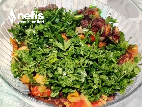 - Maydanozu, mor soğanı ince ince kıyalım.