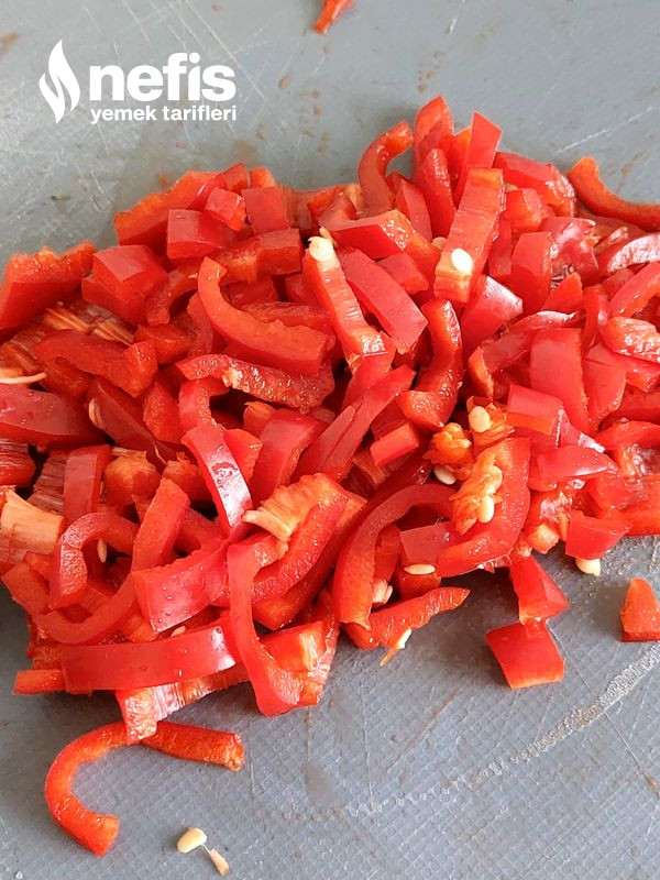 - Diğer taraftan bütün zerzevatları ince ince kıyalım. Patatese ek edelim.