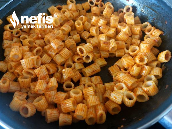 4. Salçayı ek edelım kokusu çıkanakadar kavuralım, damak tadınıza nazaran tuzunu ve baharatları ek edelim kenarda bırakılmış olan makarna suyunu ek edelım.